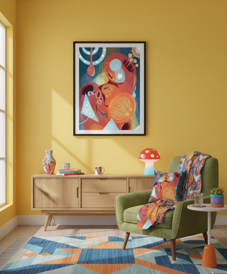 Symbiotic is about the divine feminine and masculine energies that live within all of us. These forces are not opposites, but partners — working together in balance and connection. This artwork shows that harmony through flowing shapes, soft lines, and warm and cool colors.